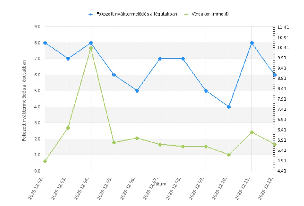 A vércukor és fokozott nyáktermelődés összefüggése egy olyan ALS betegnél, akinél fluktuáló volt az étrendi adherencia, ezzel együtt a vércukor-szint. Azokon a napokon, amikor jobban megvalósította az étrendet és alacsonyabb volt a vércukor-szint kevesebb és enyhébb tünetei voltak.